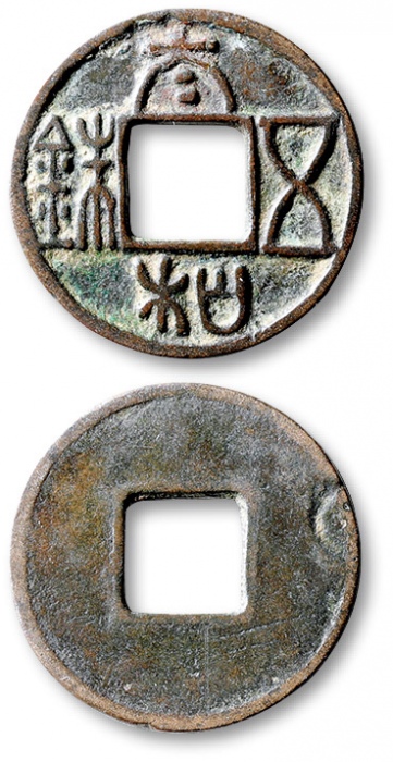 NORTHERN ZHOU: Anonymous, 557-581, AE cash (4.47g), H-13.30 var, wu xing da bu, with legend repeated and inverted on reverse, VF to EF, RRR. The legend translates as the large coin of the five elements [metal, wood, water, fire, and earth], issued in 574 b ...