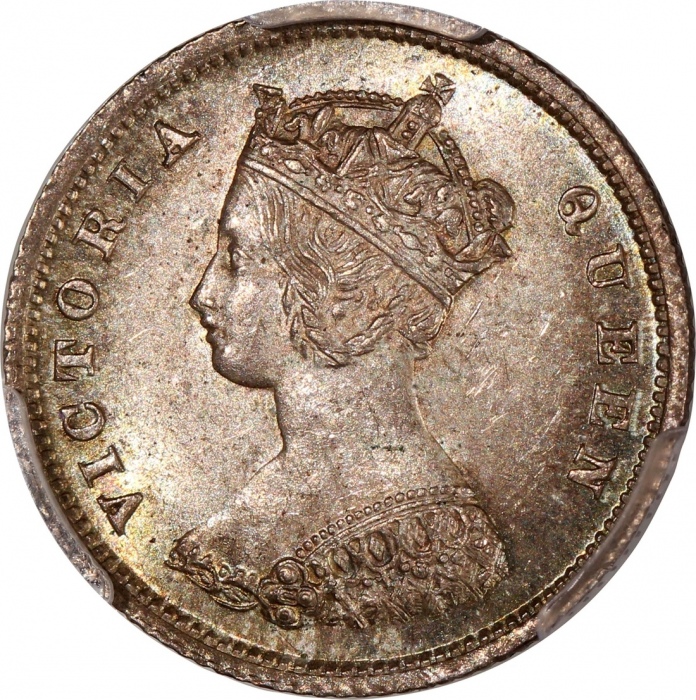 1873年香港维多利亚五仙,PCGS MS63,#46484219,PCGS纪录中第三高分,罕版美品。Hong Kong, Victoria, 5 cents, 1873, PCGS MS63. #46484219. Third highest grade example by PCGS. An attractive example of a scarce date 5 cents.