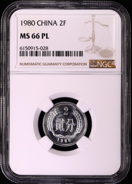 第200094号:1980年2分 NGC MS66PL,五大天王分币之一。估价:1000--2000