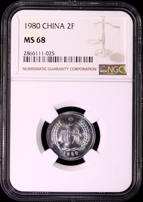 第200091号:1980年2分 NGC MS68,五大天王分币之一。估价:3500--5500