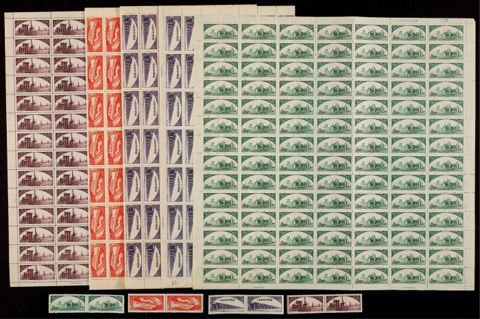 1953年特5伟大的祖国─建设新票共100套,含(4-1)破版100枚,(4-2、3、4)整版98枚及双连,发行无胶未贴,上中品