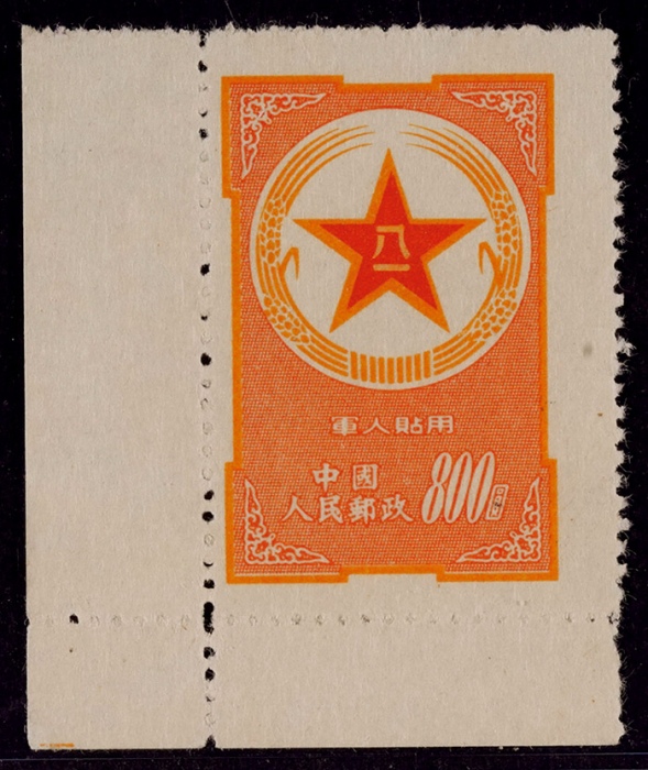 1953年黄军邮新票一枚,带左下直角边址,发行无胶未贴,上品