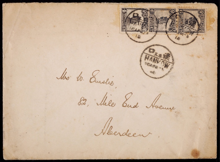 1923年汉口寄瑞典封,贴伦敦版帆船6分两枚、北京二版帆船4分(灰色)一枚,符合国际超重邮资,销汉口4月16日英汉半切小圆戳,此封为北京二版帆船邮票最早使用例,比以往记录早一个多月,是收藏组集帆船邮集非常重要的素材,保存完好 ...