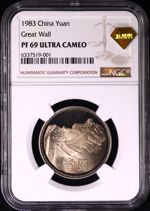 第200183号:1983年精制长城1元 NGC PF69UC,淡淡黄色包浆,所见无明显瑕疵。估价:10000--15000