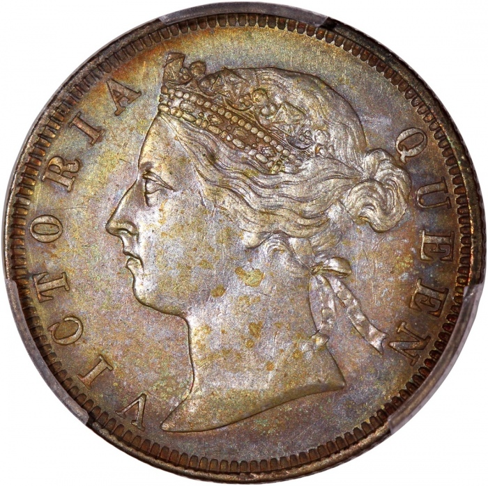 1892-H香港维多利亚半圆,PCGS UNC Detail(清洗),#46484201,发行仅20000枚。Hong Kong, Victoria, 50 cents, 1892-H, (KM-9.2), mintage 20,000, PCGS Genuine UNC Detail (cleaned). #46484201