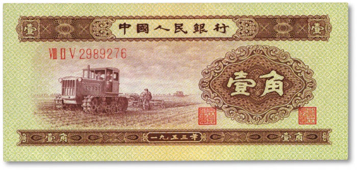 关于 1953至80年中国人民银行人民币一组5枚, 包括2枚1角, 1枚2角, 2枚5角. 编号 VIII I V 8221347, N0Y2181943, X IX 20218679, III V IV 的评论