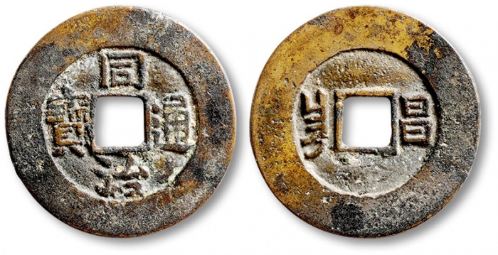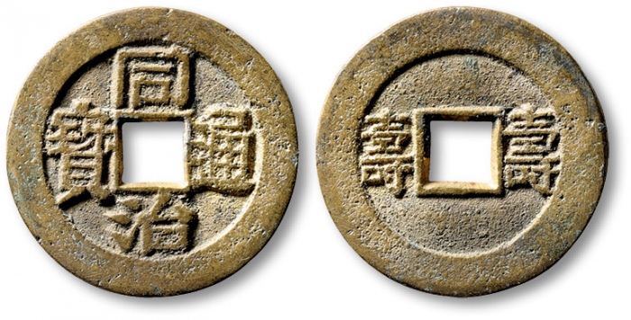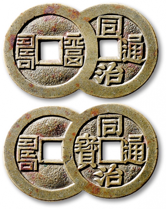 清“同治通宝”背满汉“昌”套子钱一枚,直径:25.9mm,铸造精美规整,文字清晰,包浆熟美,品相一流,极美品