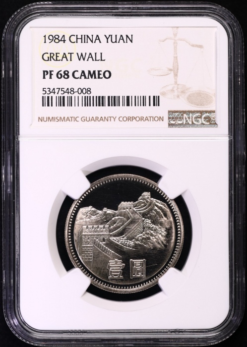 第200219号:1984年精制长城1元 NGC PF68CA(沈阳版 11M绿标),原始光泽,淡月牙彩。估价:12000--20000