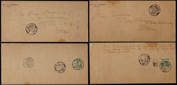 1921年河南渑池寄北京封2件,分贴北京一版帆船3分邮票各一枚,4月21日(28日)分寄北京,销票“渑池”英汉腰框式铲字日戳,均有北京落地戳中转一件盖“郑州(戊)十年四月廿八”英汉腰框日戳,另一件盖河南开封府四月廿一英汉腰框日戳,河南邮史研究较好素材,保存完好 ...