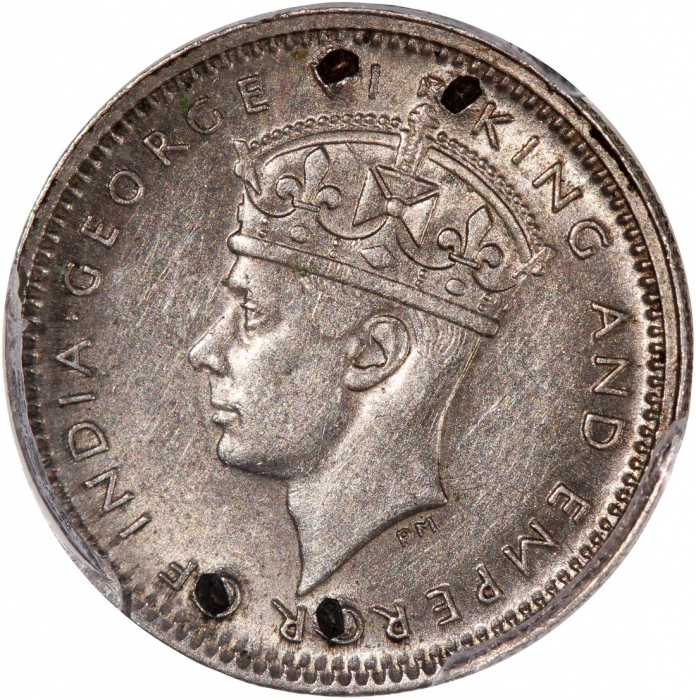 1941-KN香港乔治六世五仙,重要年份,PCGS AU Detail (有损),极罕之战时版别,撇除币身4个小洞,可谓近乎完美,不容错失的罕品!。Hong Kong, George VI, 5 cents, 1941-KN, key date, PCGS Genuine AU Detail (damage). #46484257. An elusive wartime issue. Aside from the ...