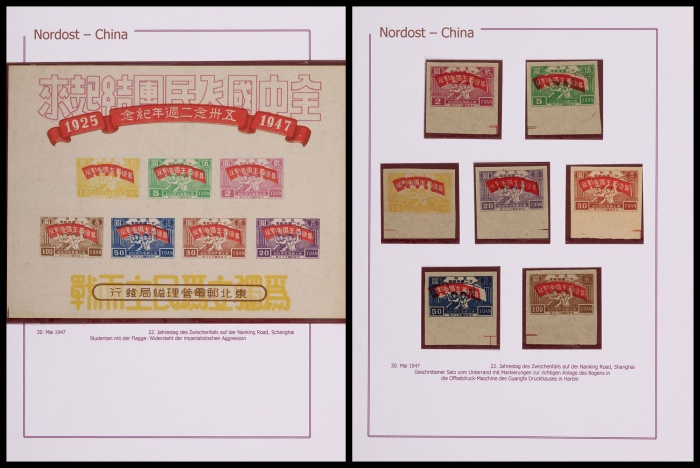 东北区1947年五卅纪念无齿新票全套及小型张,带展页,较少见,上中品