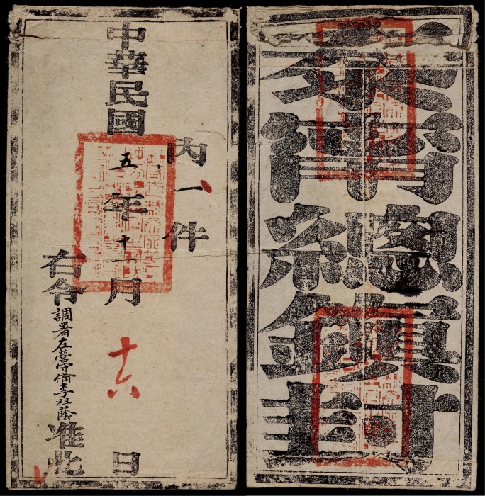 民国五年(1916年)泰宁总镇公文封寄调署左营守备李祖荫官封,钤官印三方,朱批十一月十六发递,保存完好<br><br>泰宁县:南唐中兴元年(958年)升归化场为归化县,宋元佑元年(1086年),邑人叶祖洽状元奏请朝廷更改县名为“泰宁”,隶属邵武军,明清时均属于邵武府,1983年 ...