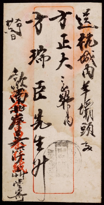 1922年安徽北岸寄杭州封,红框封贴北京二版帆船3分一枚,销安徽北岸七月二十全汉腰框戳,经大通中转,落地杭州七月廿四到达戳,保存较好
