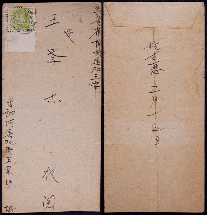 东北区1946年纳河寄朝城(朝阳)封,中式封正贴东北西满标语图1元邮票,销纳河6月14日梳式日戳发出,单戳较清,保存较好