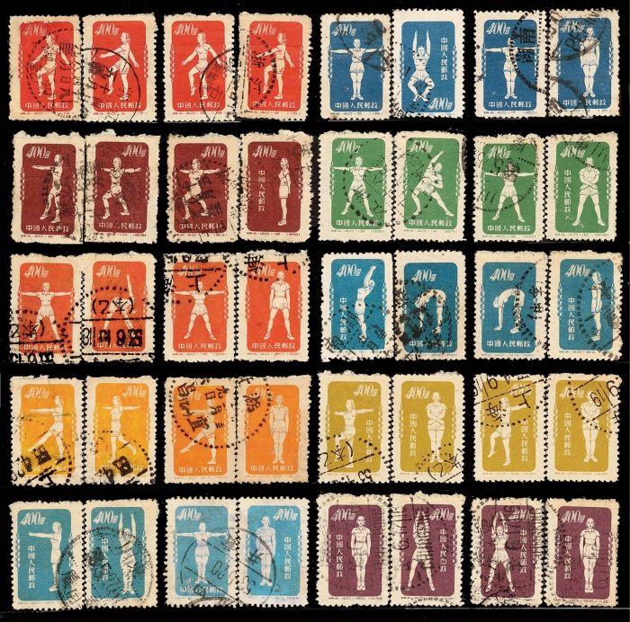 1952年特4广播体操原版盖销旧票全套40枚,销北京(八)1955.12.31三格汉英日戳,上中品
