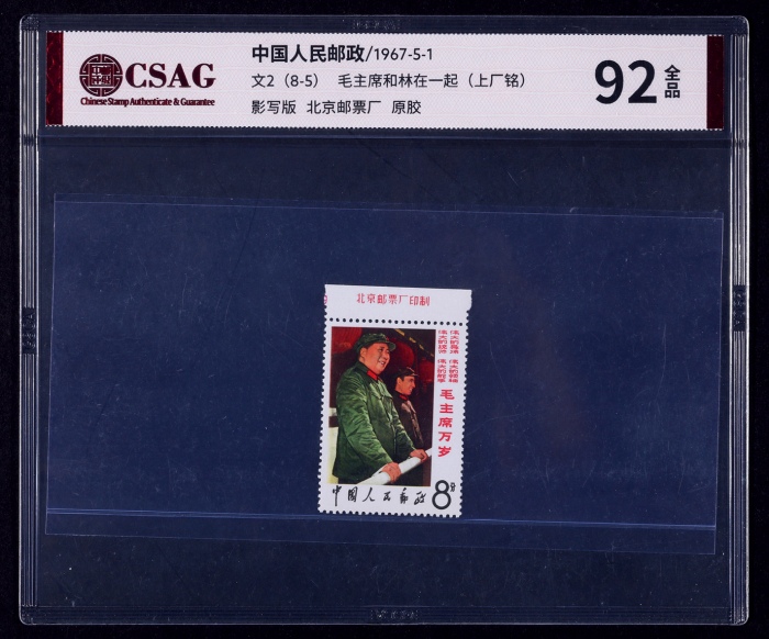 1967年文4毛主席43分新票2枚,ASG评级95分