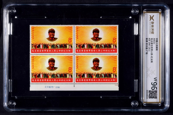 1967年文6红太阳新票四方连,带下厂铭纸边,源泰评级96分