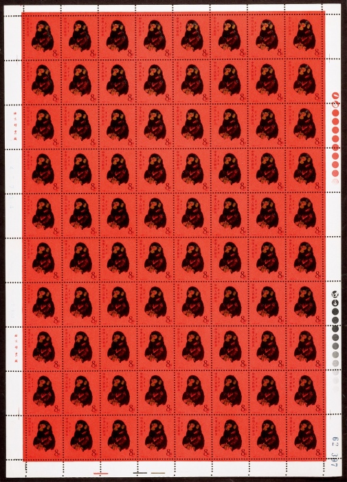 1980年T46庚申年“猴”新票版张80枚,原胶未贴,上品