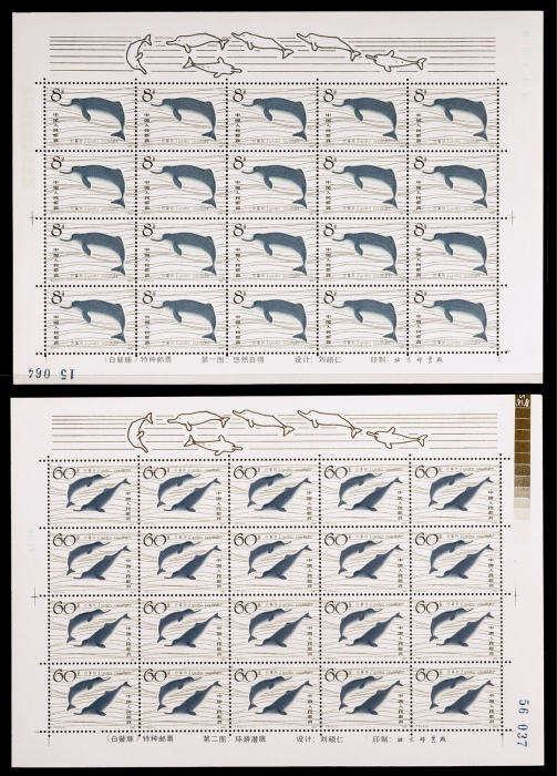 1980年T57白鱀豚新票全套小版张,原胶未贴,上中品