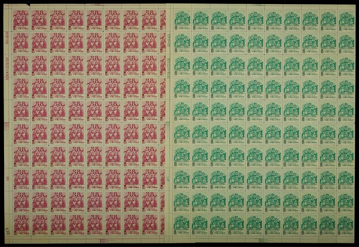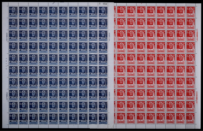 1959年特31中央自然博物馆新票共100套,大方连组成,发行无胶未贴,上中品