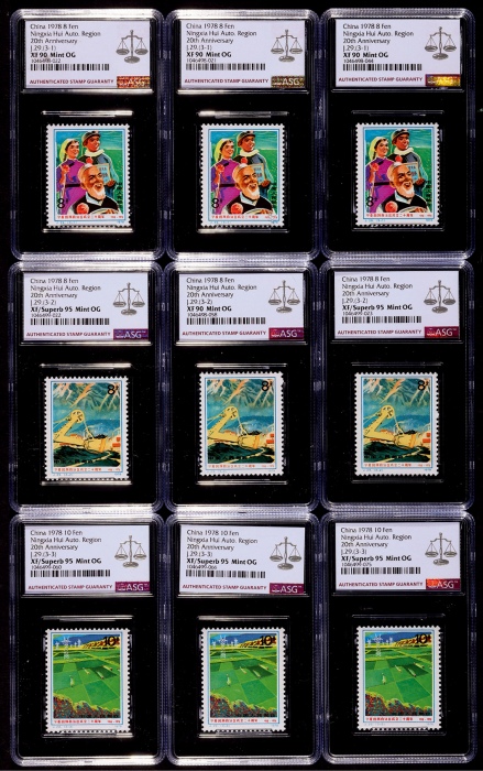 1978年J29宁夏回族自治区成立新票3套,ASG评级90-95分