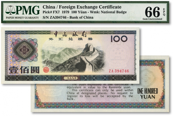 1979年中国银行外汇兑换券壹佰圆,纹路清晰,色彩浓郁,全新(季军分)