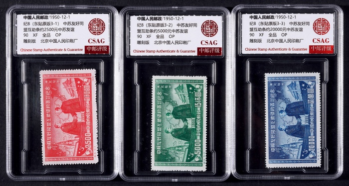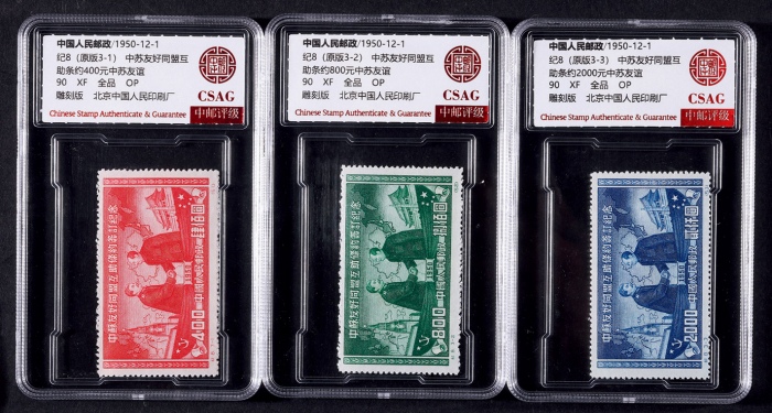 1950年纪8中苏友好同盟原版新票全套3枚,中邮评级90分全品
