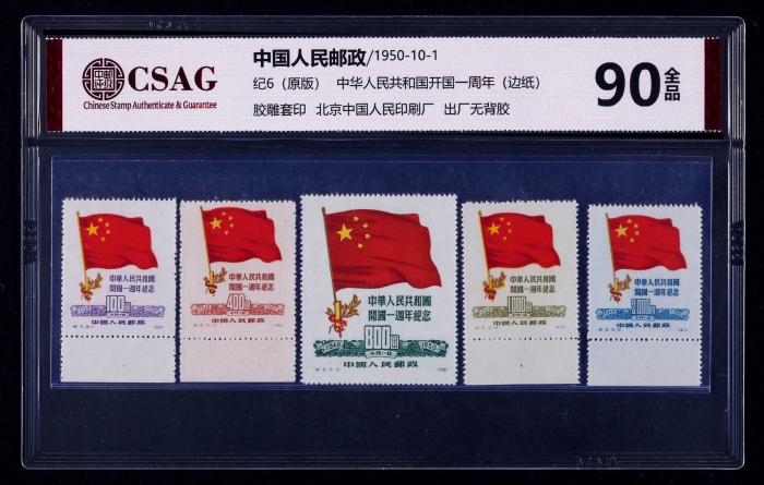 1950年纪6中华人民共和国成立一周年纪念原版新票全套5枚,中邮评级90分全品