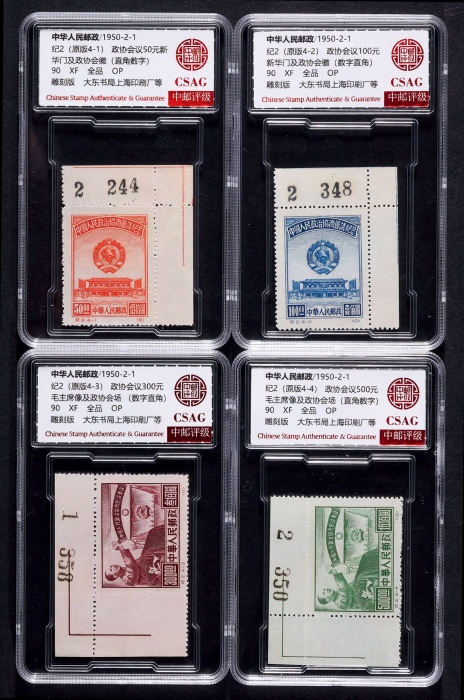 1950年纪2政治协商会议原版新票全套4枚,带数字直角边纸,中邮评级90分全品
