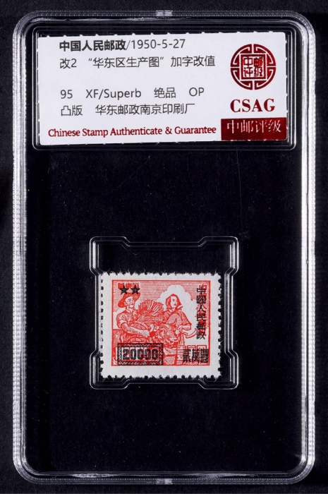 1950年改1-500元新票一枚,折纸加盖大变体,此种加盖变异极少见。邮票展平可见加盖面值分离错位,上品