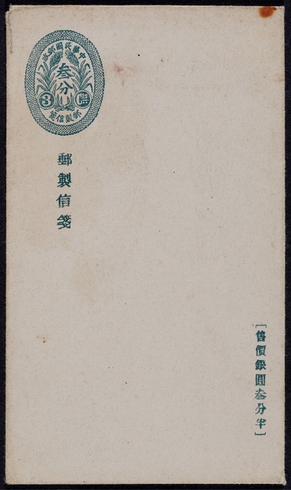 1919年中式嘉禾图3分邮制信笺未使用一件,“售价银圆叁分半”版式,保存完整