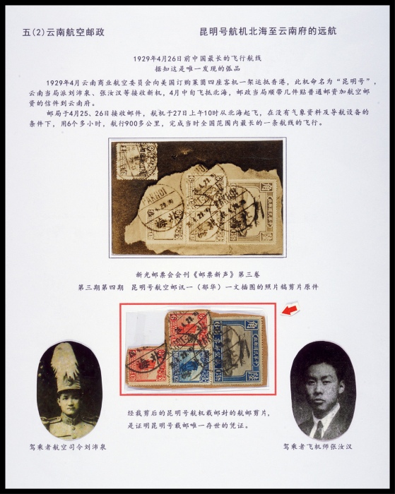 1929年昆明号航机载邮封的航邮剪片,贴北京二版航空60分、及帆船10分各一枚、6分两枚,销北海29.4.26英汉三格式日戳,经裁剪后的昆明号航机载邮封的航邮剪片,是证明昆明号载邮唯一存世的凭证,据知这是唯一发现的弧品,非常珍罕<br><br>那家佑著:云南早期航空邮政史(1918-1 ...