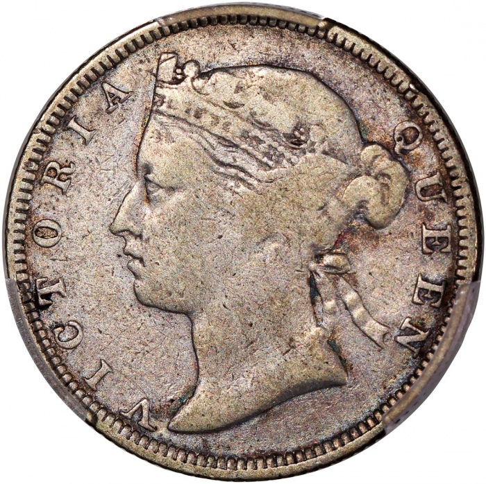1881年香港维多利亚五仙,8骑7版,PCGS AU58,#46484217。Hong Kong, Victoria, 5 cents, 1881, 8 over 7, PCGS AU58. #46484217.