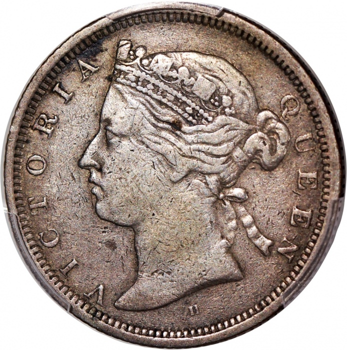 1872-H香港维多利亚二毫,7骑6版,PCGS XF Detail (有清洗),#46484285,罕见日期骑字版。Hong Kong, Victoria, 20 cents, 1872-H, 7 over 6, PCGS Genuine, XF Detail (cleaned). #46484285. Scarce date type nonetheless