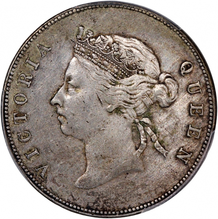 1891年香港维多利亚半圆,PCGS XF Detail (有清洗),#46484248。Hong Kong, Victoria, 50 cents, 1891, PCGS Genuine, XF Detail (cleaned). #46484248