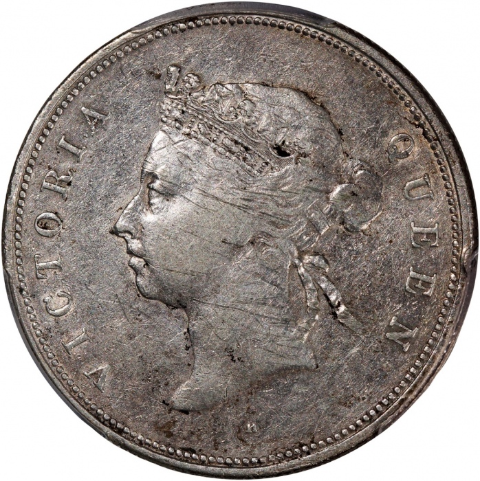 1891-H香港维多利亚半圆,发行量70000枚,PCGS XF Detail (有划痕),#46484251。Hong Kong, Victoria, 50 cents, 1891-H, mintage 70,000 PCGS Genuine, XF Detail (scratch). #46484251