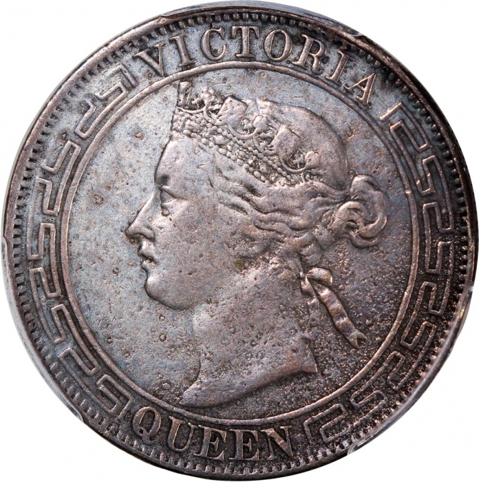 1866年香港维多利亚半圆,总发行量59000枚,PCGS VF Detail (镶嵌经移除),#46484310,经典稀见版别,大热美品。Hong Kong, Victoria, 50 cents, 1866, total mintage 59,000 PCGS Genuine, VF Detail (mount removed). #46484310. An iconic and scarce type half dollar des ...