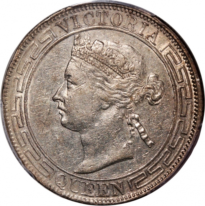 Hong Kong, Victoria, 50 cents, 1867, key date, total mintage 59,000, PCGS AU50. #46484286. A shimmering example of the scarce type ...