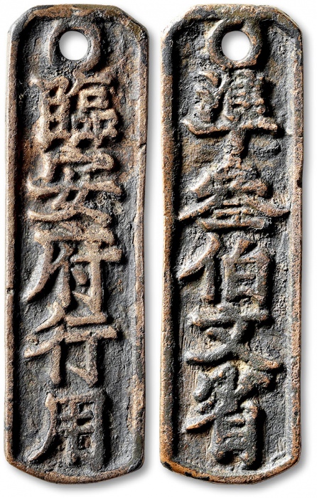“临安府行用凖叁伯文省”钱牌一枚,高:70.1mm,此品典型水坑,局部金壳包裹,完整无修,字口清晰,文字极为优美,开门见山,所见多为断残之品,此品乃同类中之佼佼者。临安府三百文钱牌乃南宋顶级大珍,存世极为罕见,历来深受藏家珍视,值得推重,极美品