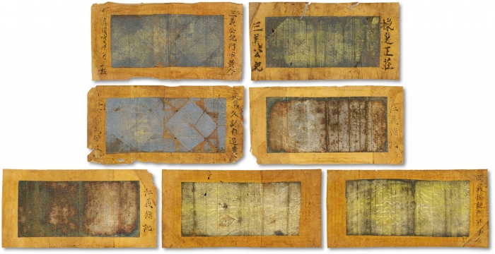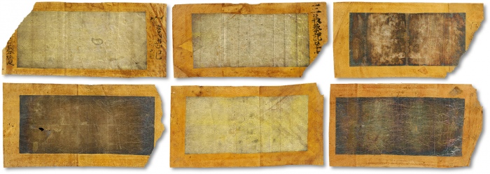 清山西“三义恭记”、“仁义德记”、“宝成德记”等羊皮金共六枚,少见,保存尚佳,极美品
