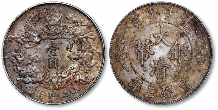 宣统三年大清银币“长须龙”版壹圆试铸样币一枚,阴叶版,1911年度支部天津造币总厂试铸,未发行,存世稀少,是宣统三年银主币系列中最具人气的版别;此枚“长须龙”铸造极为深峻,版底平整光洁无破模线,图案精美,龙图清晰立体,龙鳞峭拔饱满,生动传神,呼之欲出,细节纤毫 ...