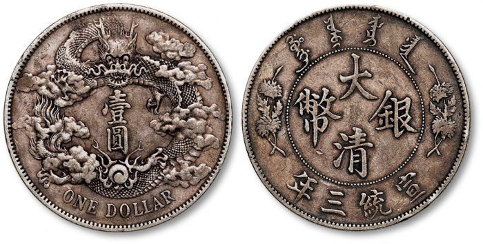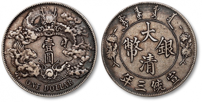 清宣统三年大清银币壹圆一枚,打制规范,细节清晰,灰色老包浆,带底光,状态自然,极美至近未使用品