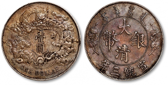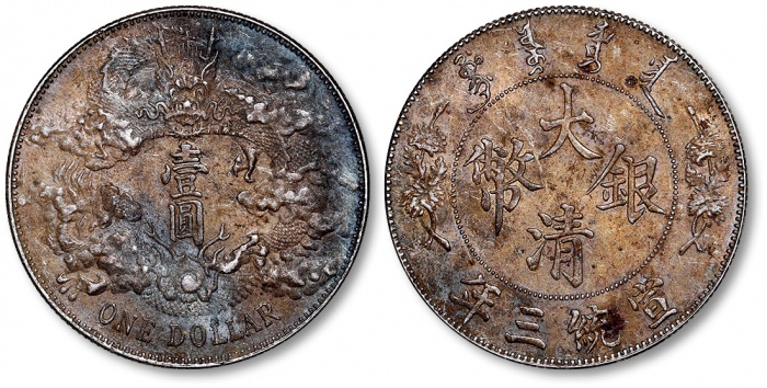 清宣统三年大清银币壹圆银币一枚,打模深峻规范,底版光洁,原味深色酱彩包浆,状态自然舒服,味道极佳,极美品
