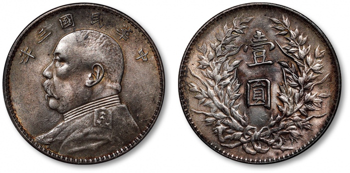 民国三年袁世凯像壹圆银币一枚,打制规范,底版平整,淡灰色包浆,状态上佳,近未使用品
