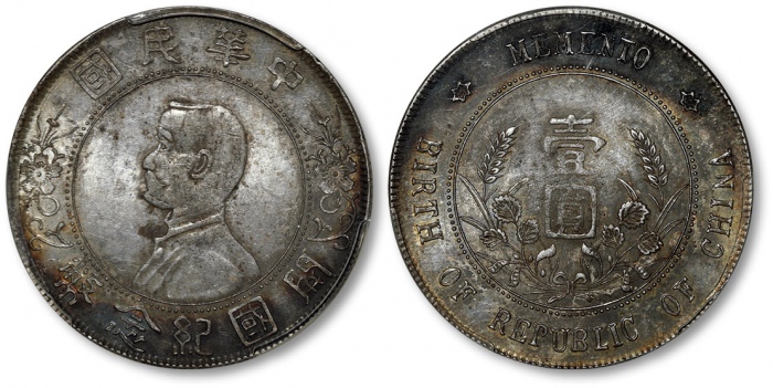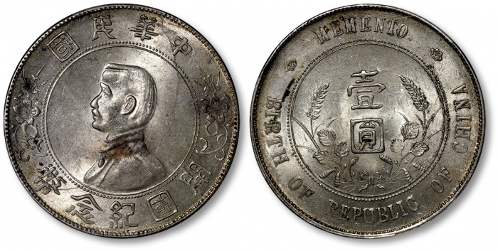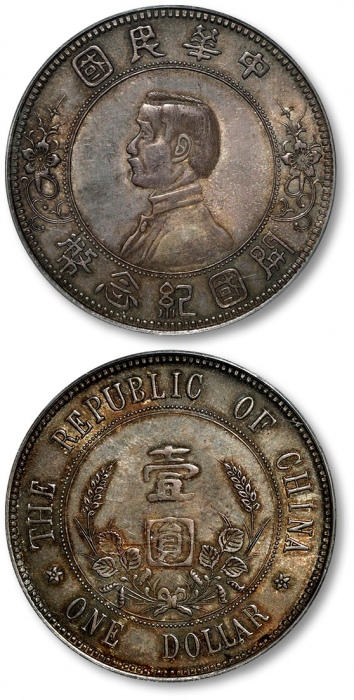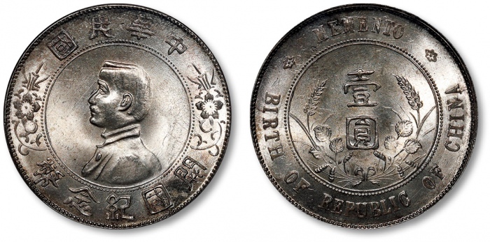 1912年孙中山像开国纪念币壹圆银币一枚,下五星版,此币铸模极深,文字马齿峭拔锐利,人像生动,头发丝丝分明,底版光洁,铸痕清晰,原味淡灰色包浆,车轮十字底光,旋转闪亮,状态极佳,十分难得,NGC MS65(3357256-008) ...