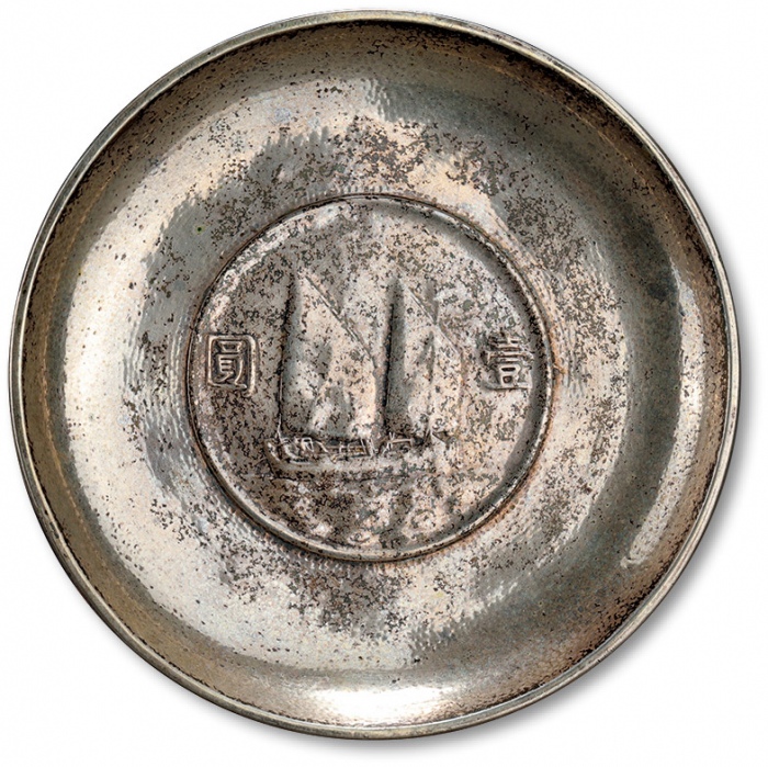 民国时期镶民国二十二年孙中山像帆船银币银盘一只