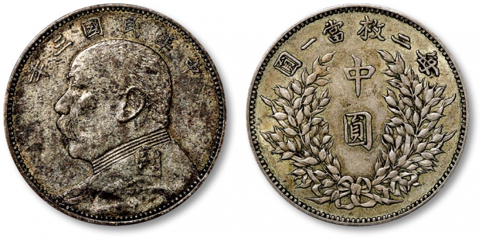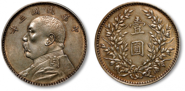 民国三年袁世凯像壹圆银币一枚,天津版初打,铸造精良,底版平整,打制规范清晰,灰色包浆,近未使用品