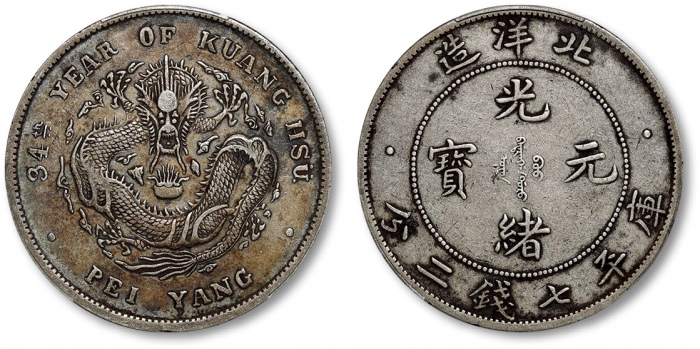 普通-七钱二分-光绪34年-北洋造-地方省造-机制银币