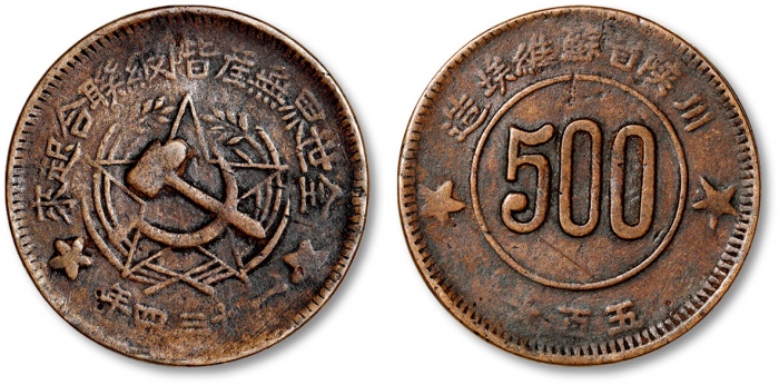 1934年川陕省苏维埃造五百文铜币一枚,极美品