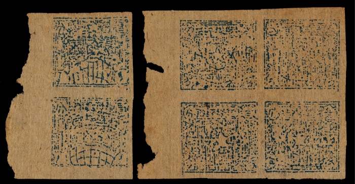 苏维埃邮政油印1分及3分新票一组6枚,区目未见记载,附中国邮票博物馆邮票鉴室室证书